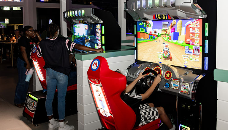 Old-school classics meet modern favorites in our vibrant arcade. Whether you’re a pinball wizard or a prize-chasing pro, the arcade at Stingrays Social is packed with excitement for all ages.